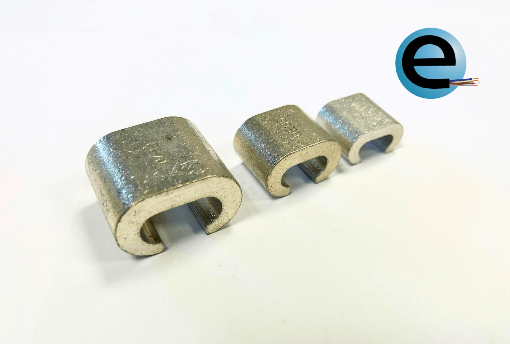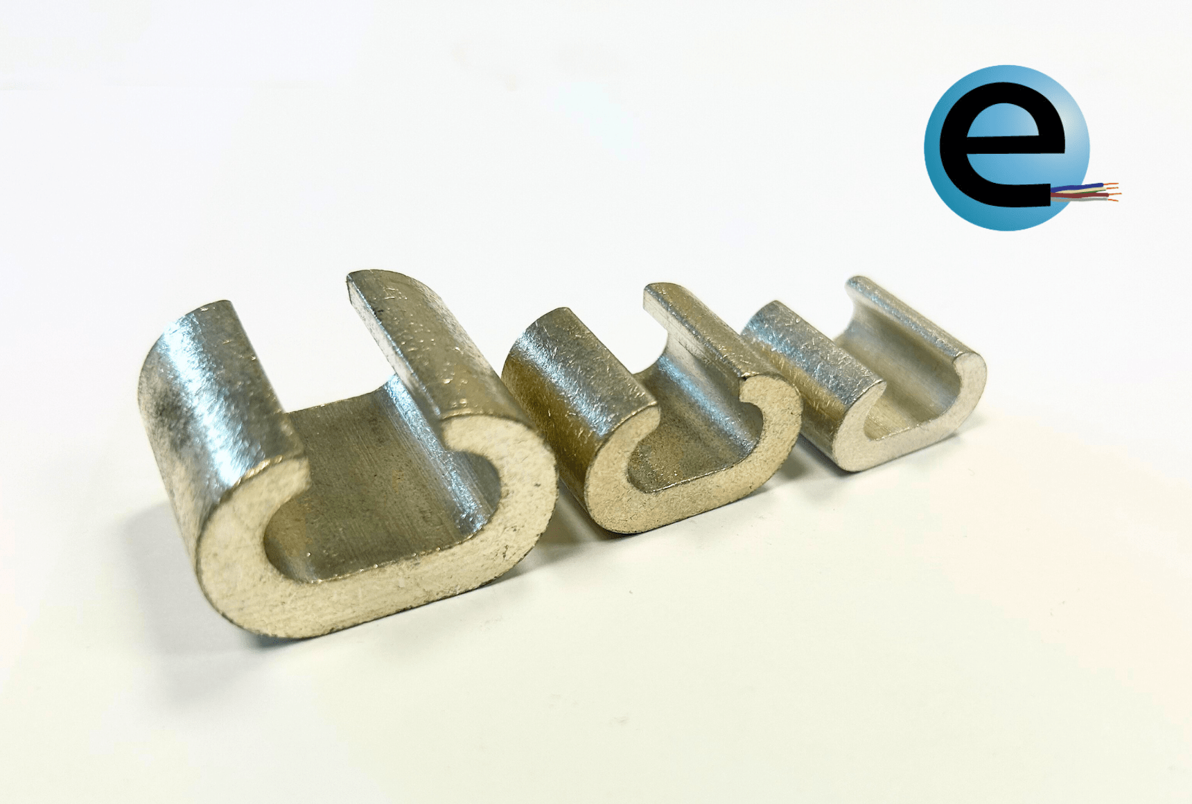 Raccords en cuivre électrolytique en forme de « C » permettant d’effectuer des dérivations sans coupures du câble principal.
